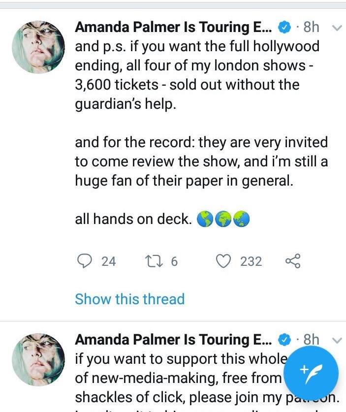 Performer Take #1: Amanda Palmer takes on The Guardian, in 6+ hour Twitter outburst